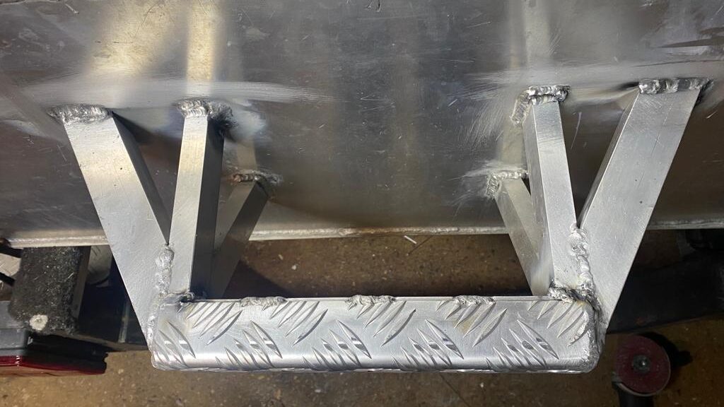 Reparatie motersteun bootDoor Jim Wies / juli 23, 2023 Scheur in de motersteun (voor reparatie) Motersteun na reparatie Reparatie motersteun boot / aluminium